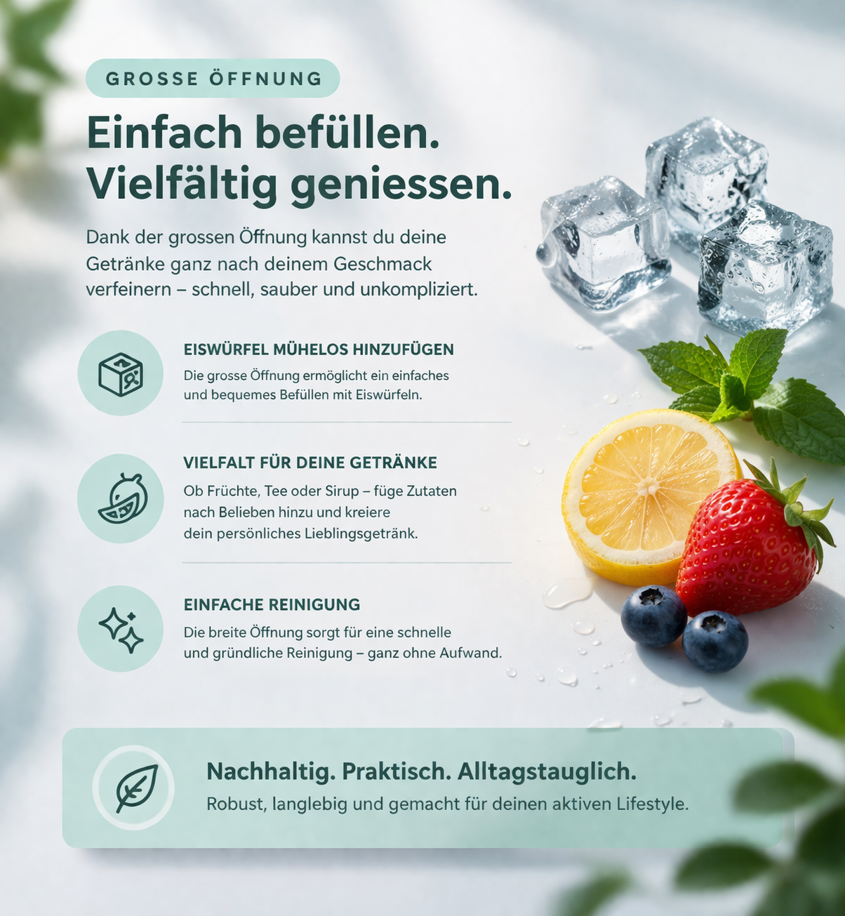 - die Reduktion von Einwegplastik durch wiederverwendbare Alternativen