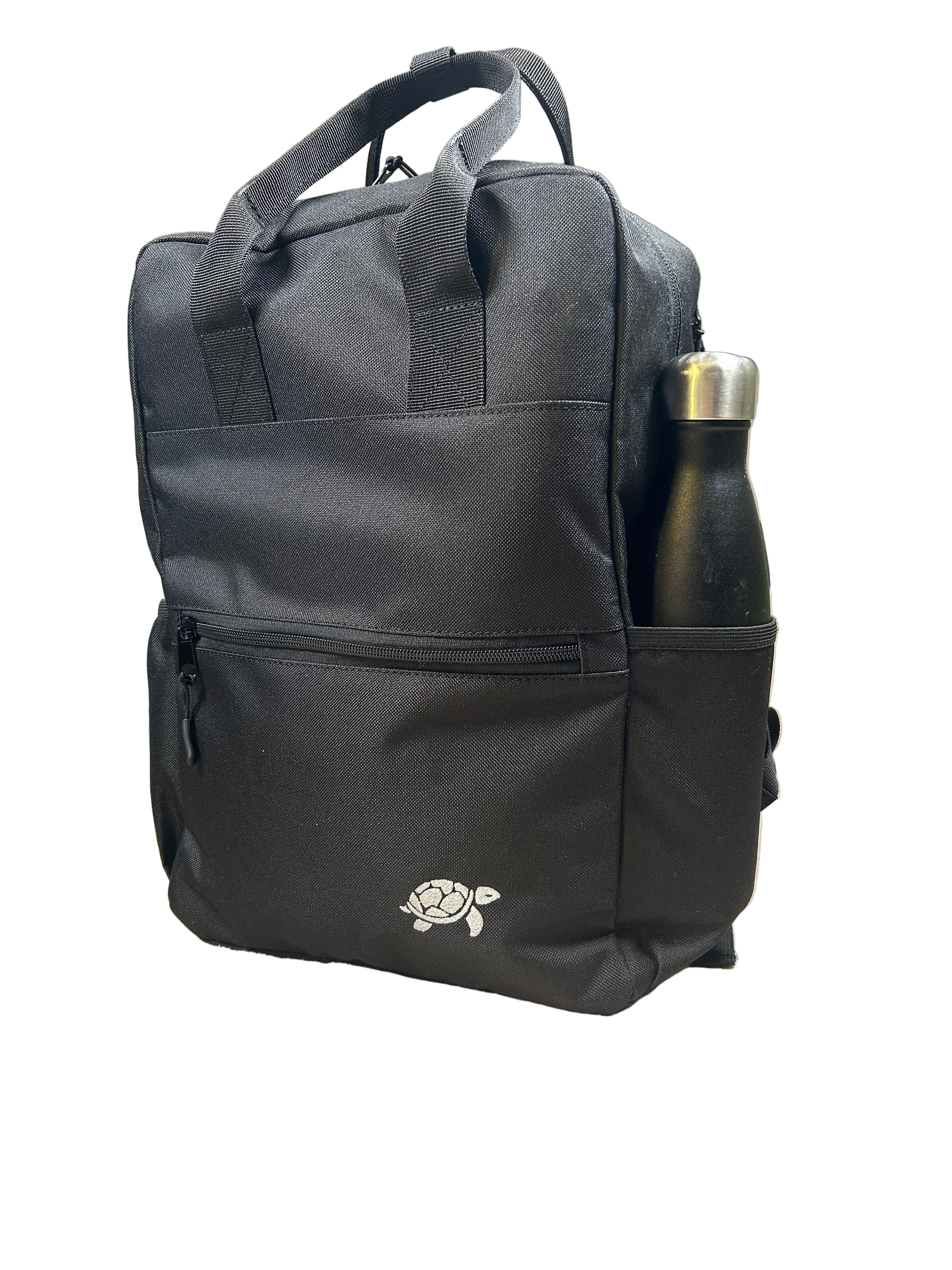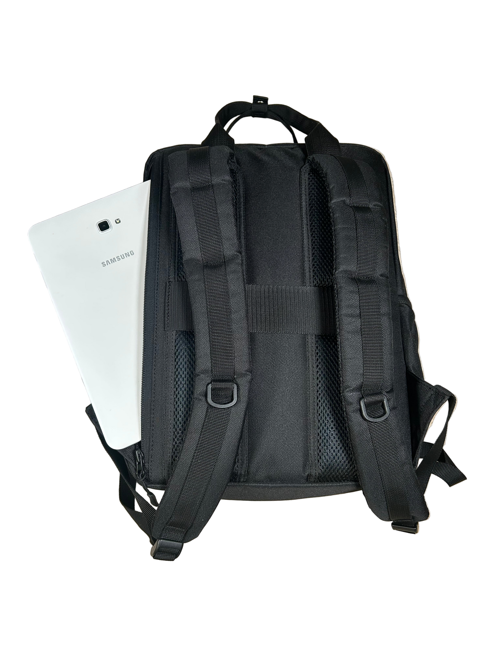 Unser Large-Modell bietet ein sicheres Notebookfach am Rücken und ist für Geräte bis 36,5 cm Höhe geeignet.