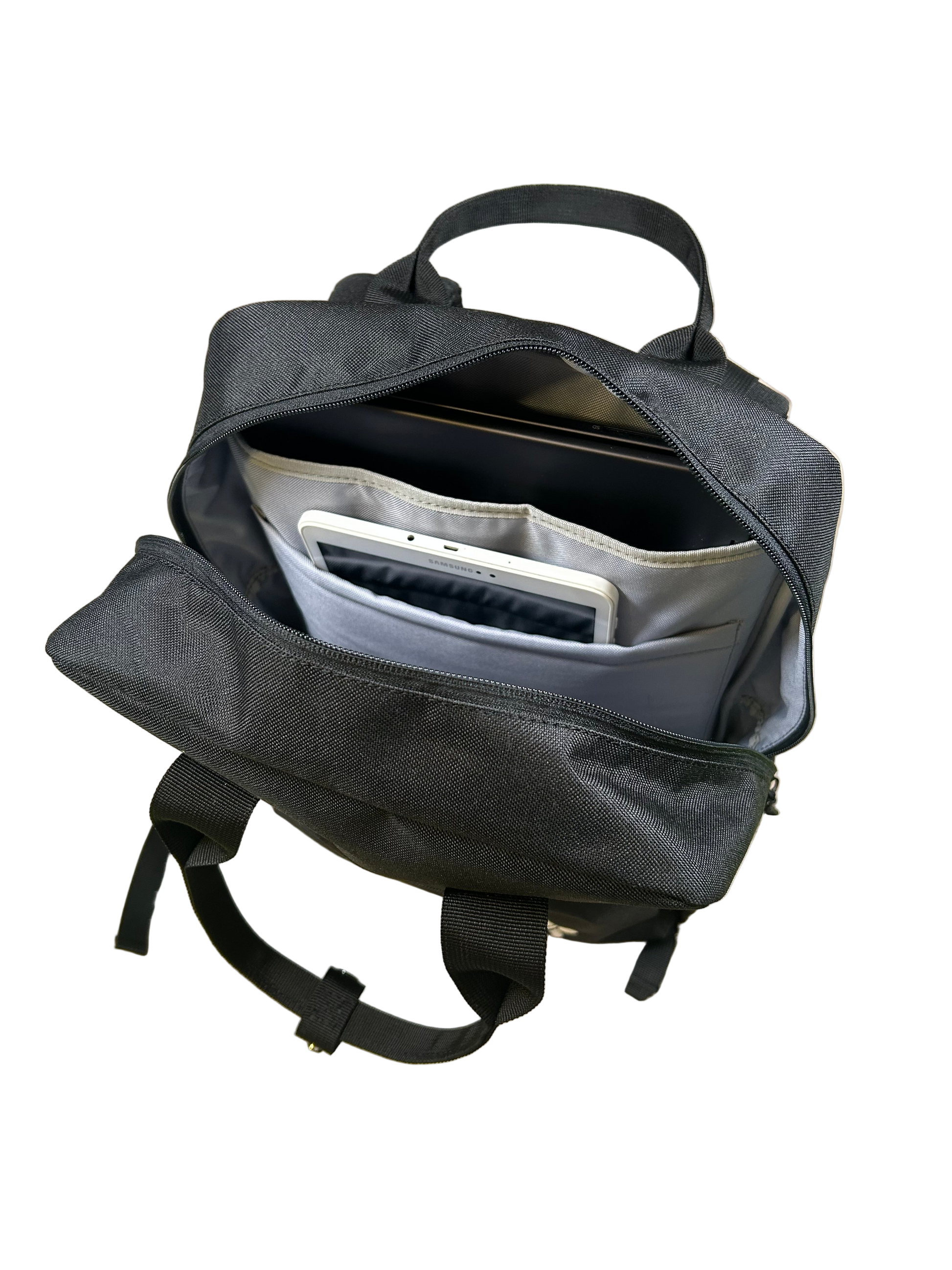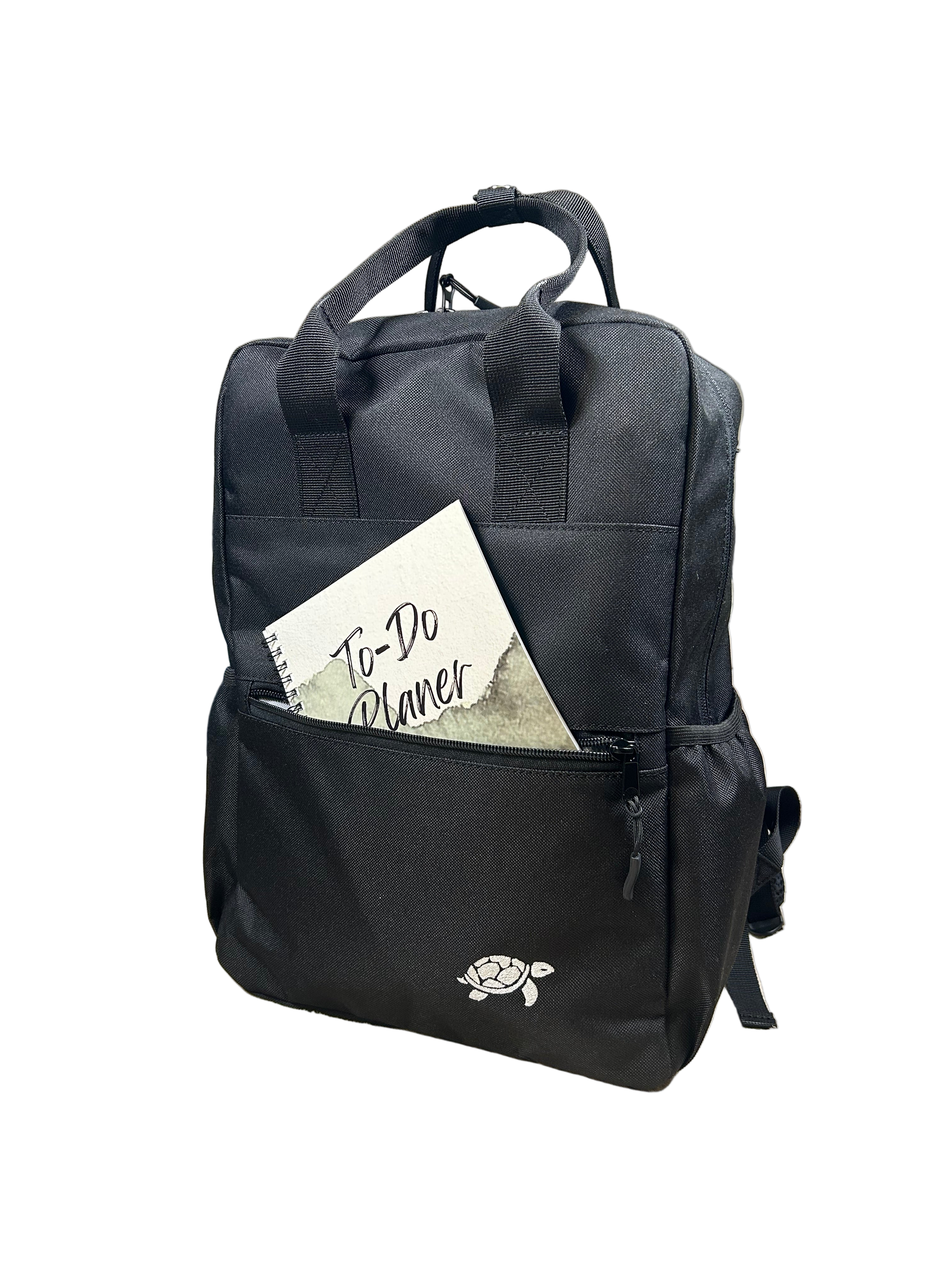 Unser Small-Modell bietet ein sicheres Notebookfach am Rücken und ist für Geräte bis 30 cm Höhe geeignet.